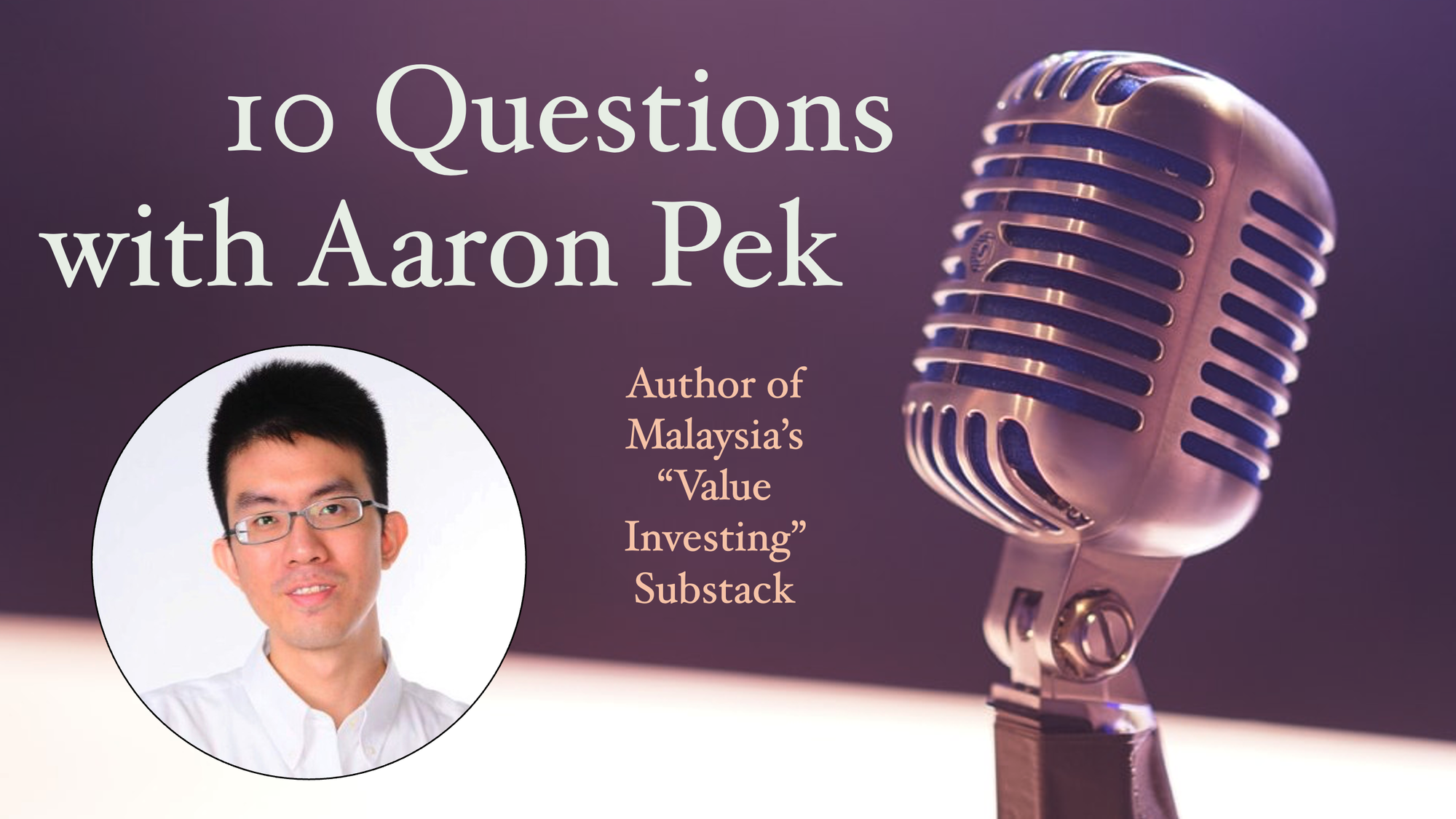 Thanks Michael, it’s great to be here. My name is Aaron Pek, in a former life I used to work as an equity fund manager overseeing both a Malaysian and an Asia Ex-Japan portfolio with an aggregate AUM of about USD 100 mil. Currently, my partners and I are working on setting up an equity research outfit that caters to institutional clients worldwide who are interested in investing in the region.