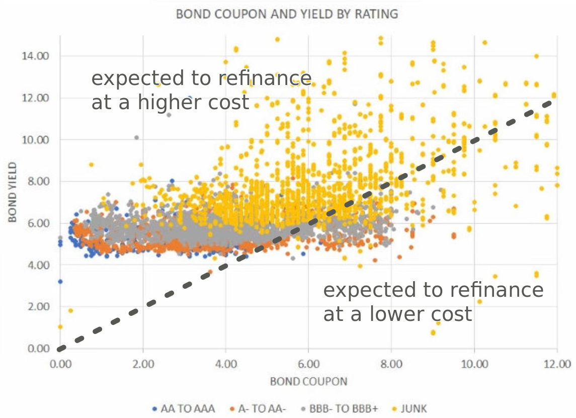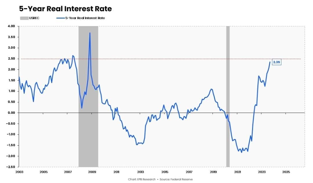 There is a well-telegraphed yet inevitable maturity wall of debt coming due. 2023 was a light year for refinancing, but during 2024 & 2025, many corporates have maturing debt, which will need to be refinanced at much higher interest rates. Some of these companies' capital structures are already stretched, and higher interest rates will lead to defaults. There is plenty of evidence that a default cycle has started already, particularly but not only in the US. It will get worse every quarter rates stay at these levels.