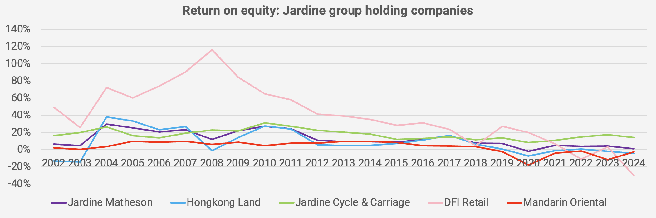 With all these changes taking place, has Jardine Matheson’s capital allocation improved? That remains to be seen. There has been no obvious improvement to the return on equity of Jardine’s main holding companies: