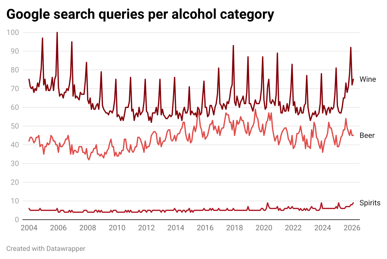 We've also seen a shift by category. Since the 1990s, wine has clearly taken market share from beer. Wine is seen as the healthier option: