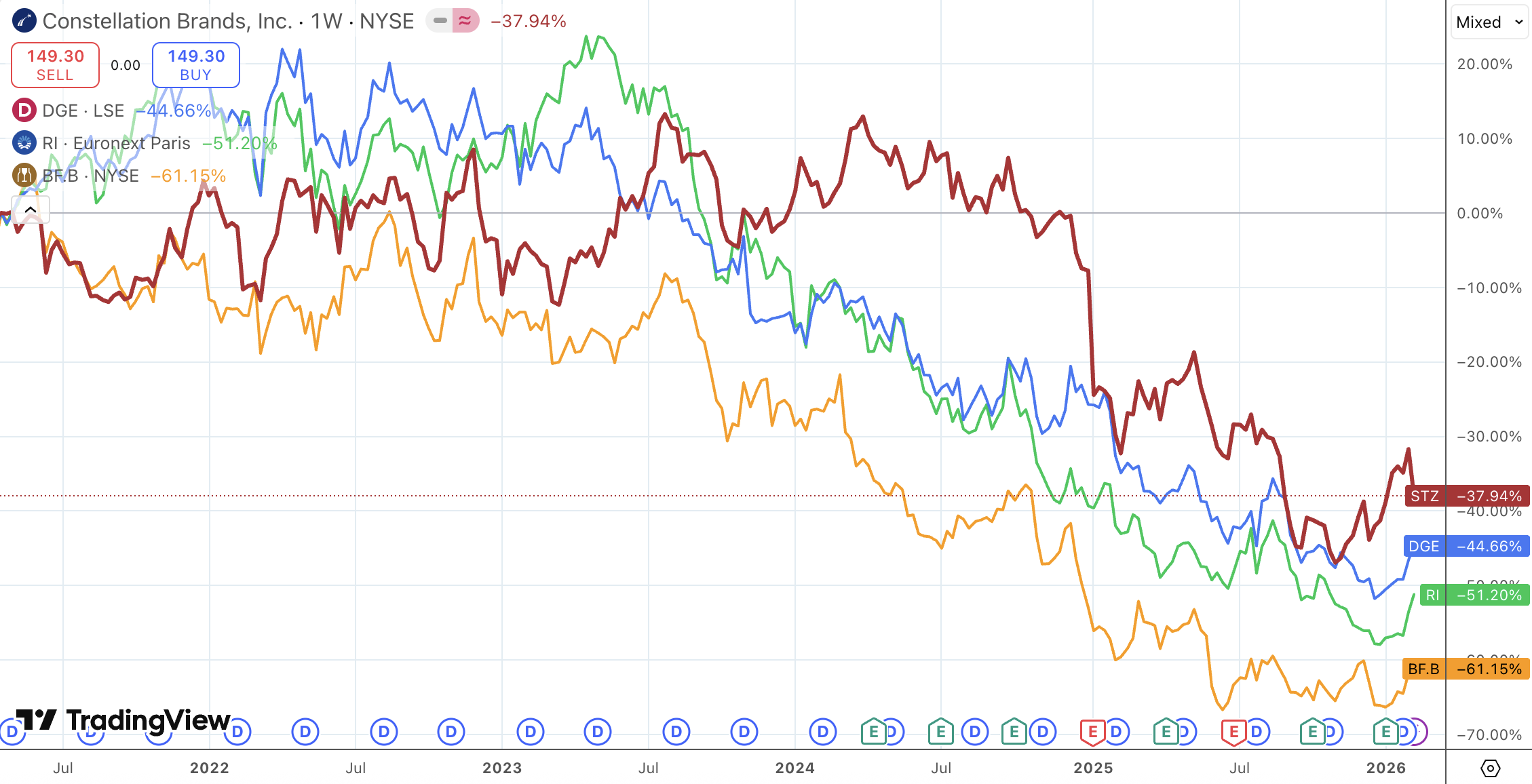 After a brutal 4-year bear market, high-profile alcohol stocks such as Diageo, Pernod Ricard, and Brown Forman are finally showing signs of life: