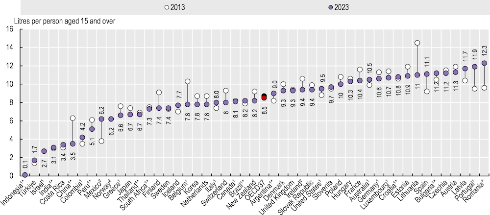 Recent OECD data show that individuals aged 15 or older in East Asian countries such as the People's Republic of China, South Korea, and Japan are consuming less than they did 10 years ago. Conversely, in India and Australia, consumption rates have actually increased. So there's nuance beyond the headline numbers.