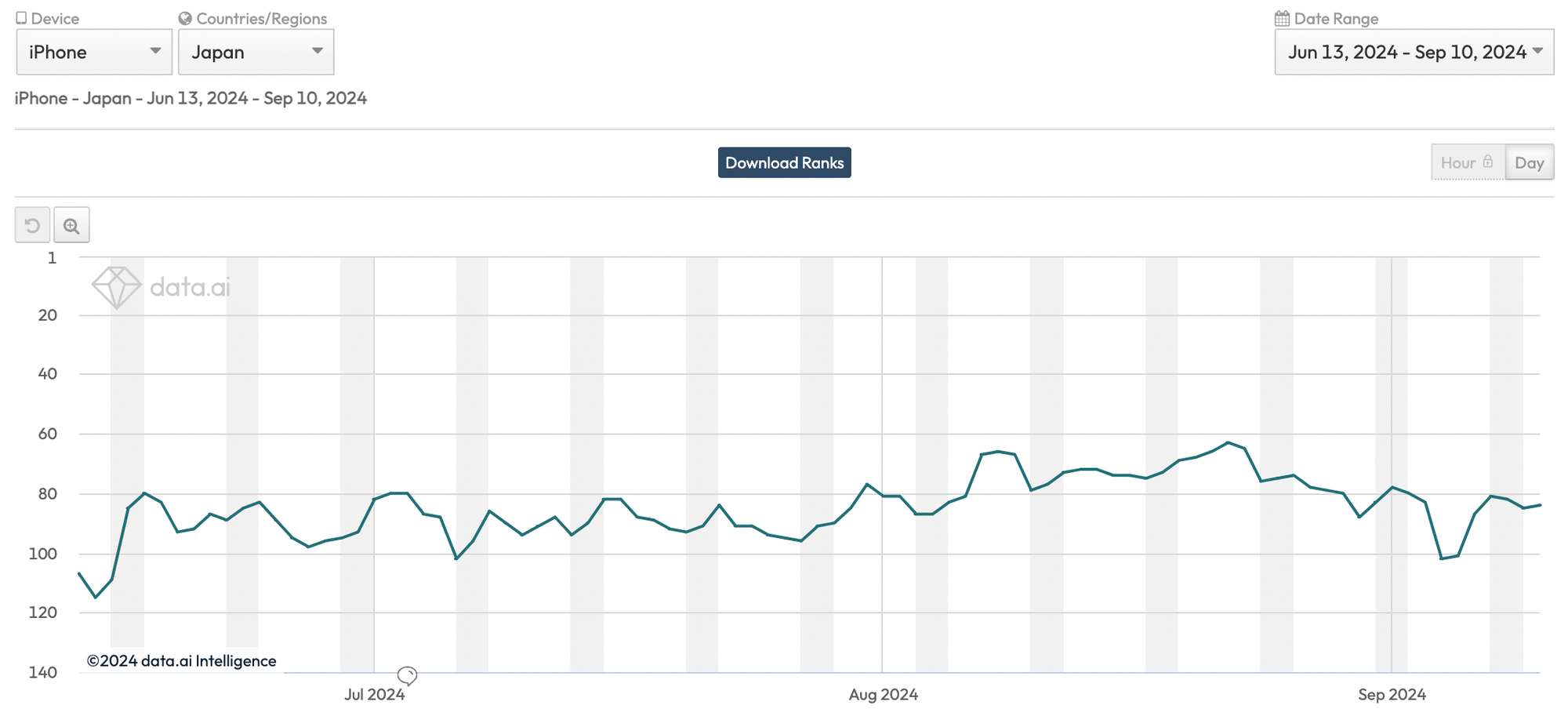 With limited history, the data provided by Data.ai is not particularly helpful. But if you’re willing to fork up the estimated US$25-40,000 for a full subscription, you can glean insights from their download or app engagement metrics, especially the historical charts that show you how a particular app is trending.