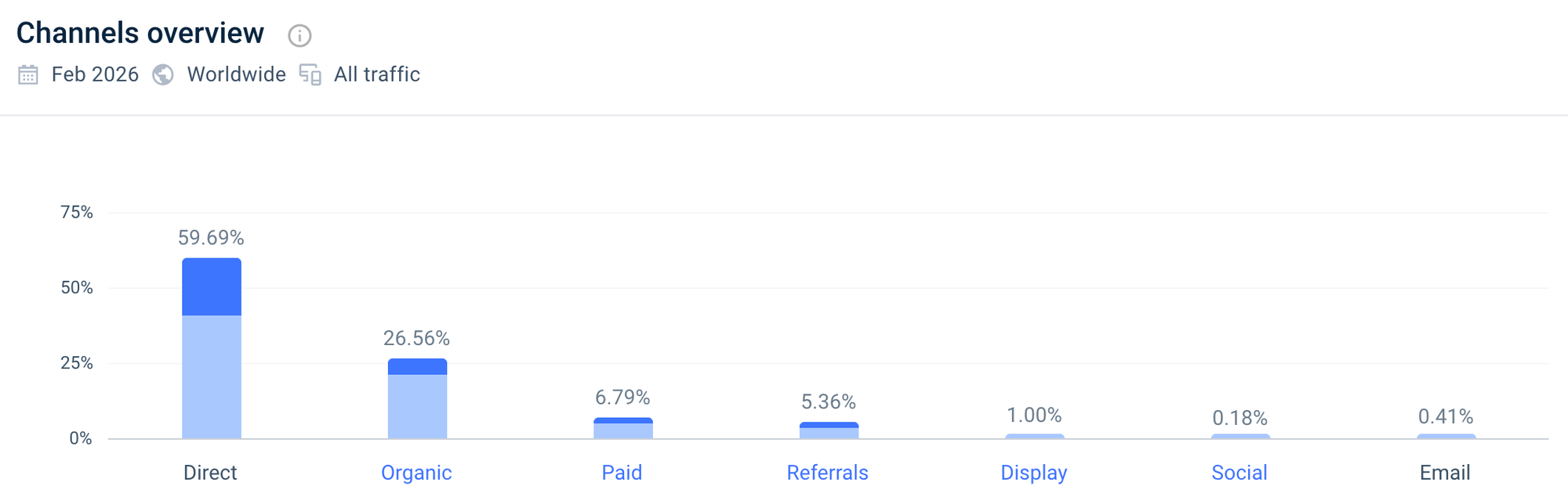 If we scroll down a bit further, we get the following "Channels overview" chart:
