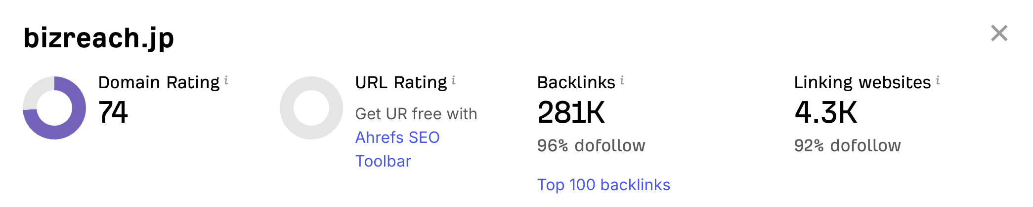 Next, let's go to Ahref's Website Authority Checker and type in BizReach.jp: