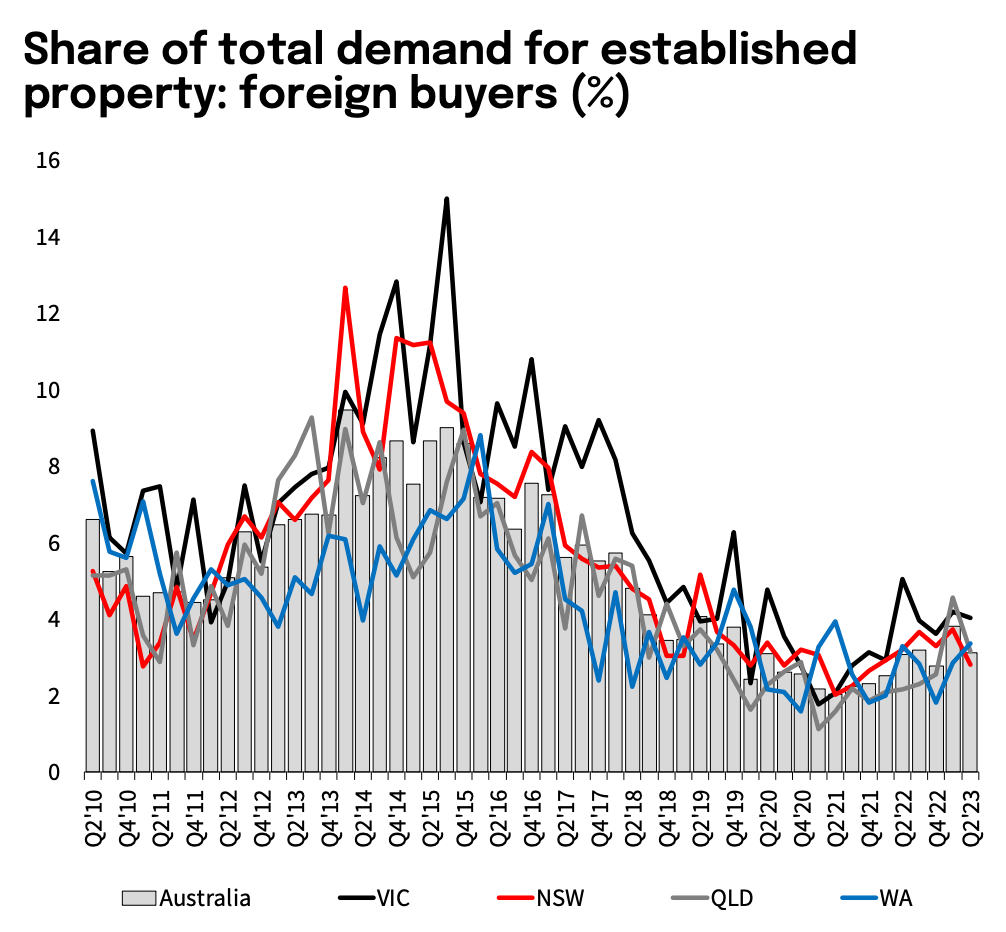 But let’s not overemphasise the impact of overseas buyers on the Australian property market. Their share of the market has gone from about 8% at the peak to just about 3% today. A tightening of capital controls from 2016 onwards caused this decline. It’s no longer a simple matter to get money out of China. I would not expect such demand to last forever.