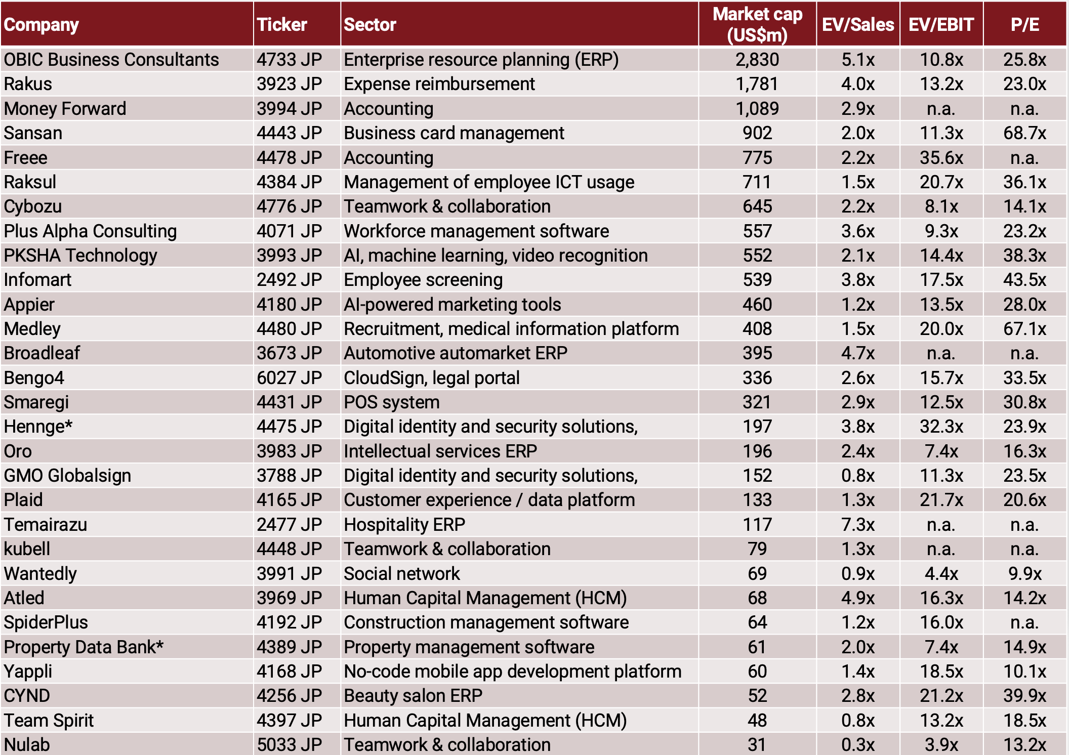 Here's the investable universe of companies within Japan's SaaS industry – a major focal point for software investors within the Asia-Pacific region: