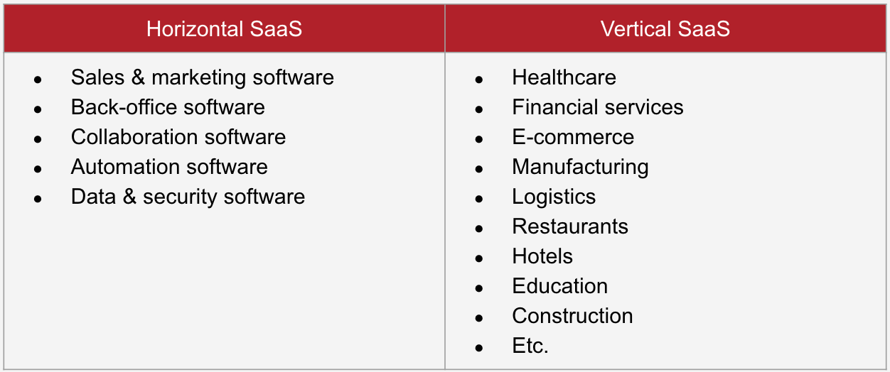 Among these two, vertical SaaS solutions seem to be taking market share. Examples include data management software for hospitals or inventory management software for logistics companies.