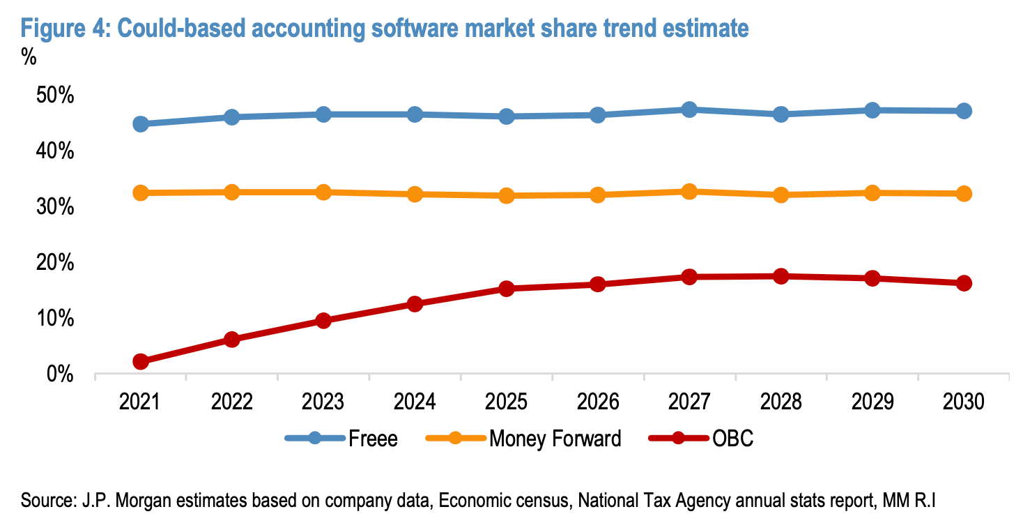 Japan’s largest enterprise resource planning (ERP) company is OBIC, which provides customized software solutions to its customers. OBIC’s separately listed subsidiary OBIC Business Consultants (4733 JP - US$3.7 billion) is more focused on customized solutions for customers as well as cloud services. OBIC has a product called Kanjo Bugyo, which has a top market share among ERP software in Japan. The SaaS version is called Bugyo Cloud, but so far, only a small portion of its customers have completed their migration to the SaaS offering.