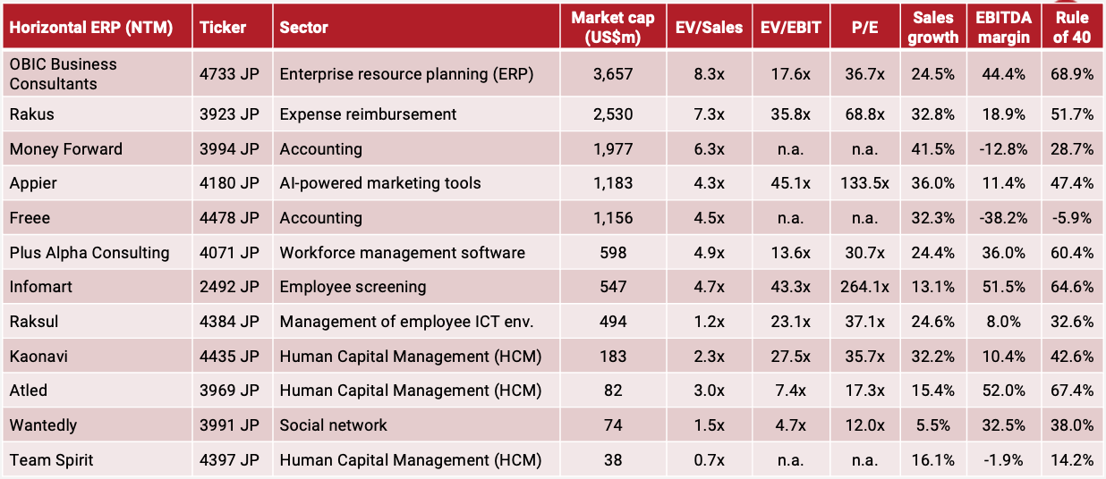 - The investable universe of stocks spans horizontal ERP providers such as OBIC, accounting software providers such as freee, vertical SaaS companies such as Temairazu and collaboration software developer Cybozu. I go through each of them in depth.