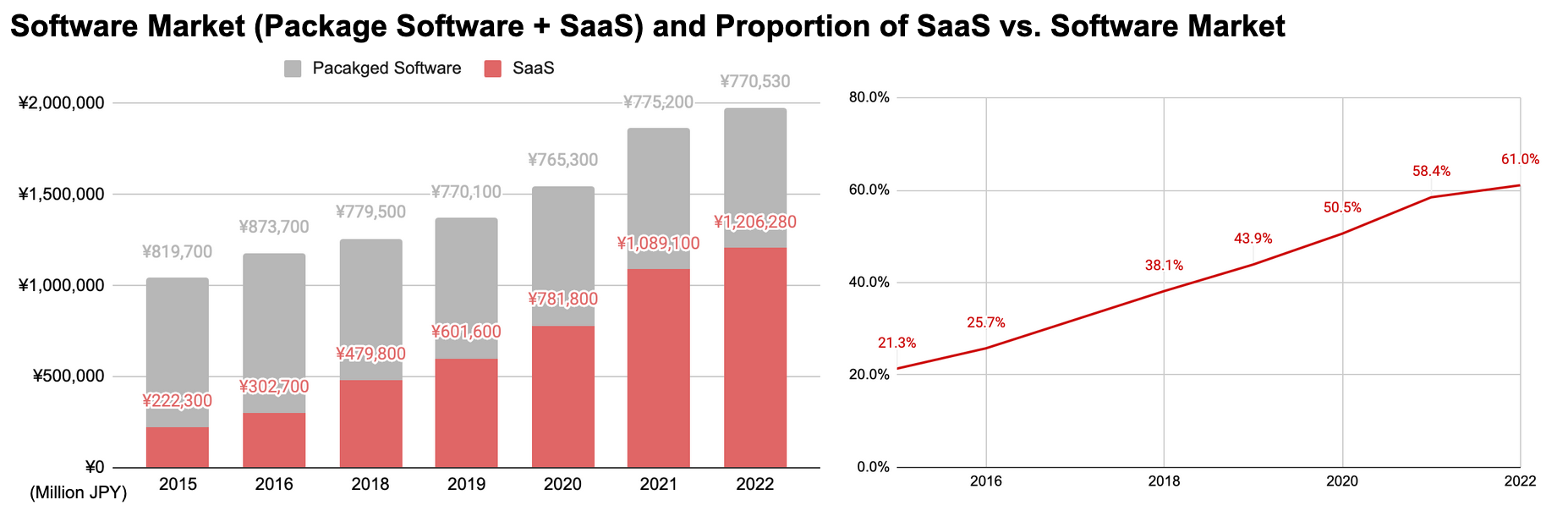 The Japanese SaaS market seems to be growing at an 11% compound annual growth rate, beating expectations a few years ago. The overall software market is clearly moving towards SaaS offerings, with packaged software becoming a thing of the past.