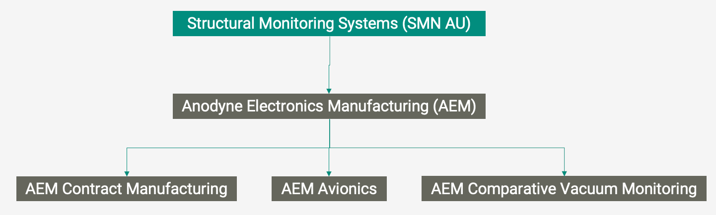 Today, Structural Monitoring Systems and its subsidiary AEM focuses on three separate segments: contract manufacturing, avionics products and a new technology called Comparative Vacuum Monitoring, or in short "CVM".