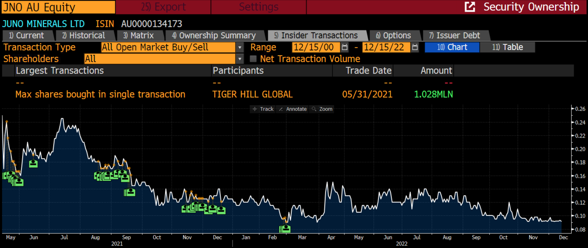 London-based hedge fund Tiger Hill Global run by Yilun Chen has been scooping up shares in Juno Minerals ever since the listing last year. He’s not an ACS subscriber, but I can pass along his contact details.