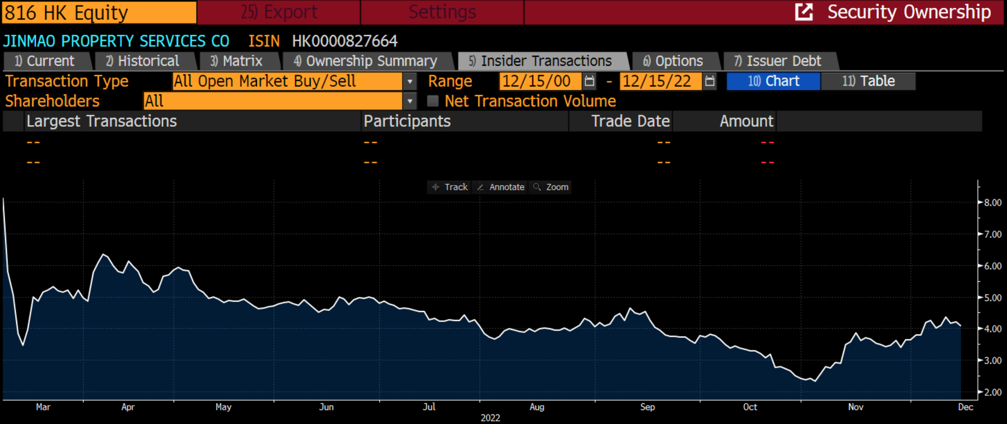 On the other hand, there’s been no insider buying in Jinmao Property Services since the spin-off.