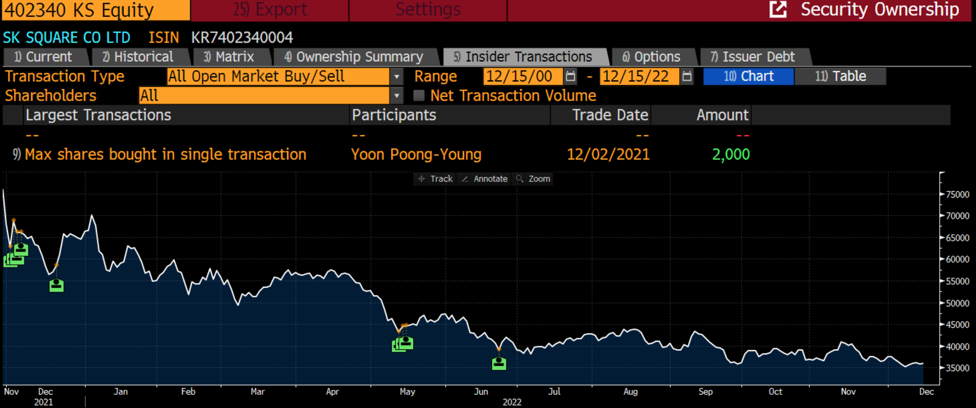 There has been insider buying in SK Square, including by Park Jung-Ho himself. But his buying has been small at just around US$60,000 in total.