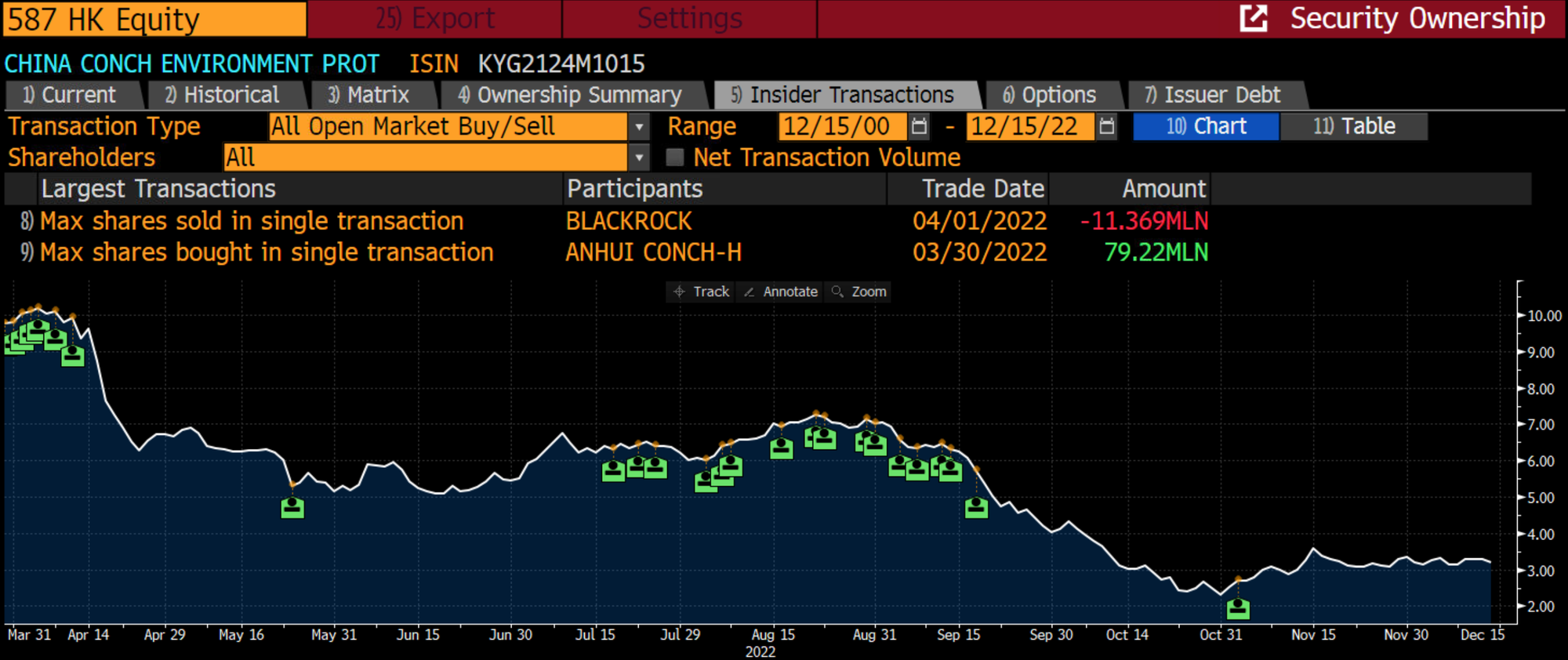 In June, Anhui Conch proposed to acquire 16% of China Conch Environment Protection, presumably from Conch Ventures. Nothing has come out of it. Looking at the insider transactions, Conch Ventures keeps buying shares, as is Conch International Hong Kong. China Conch Environment also announced a 10% share buyback. In other words, insiders appear to see value in the stock.