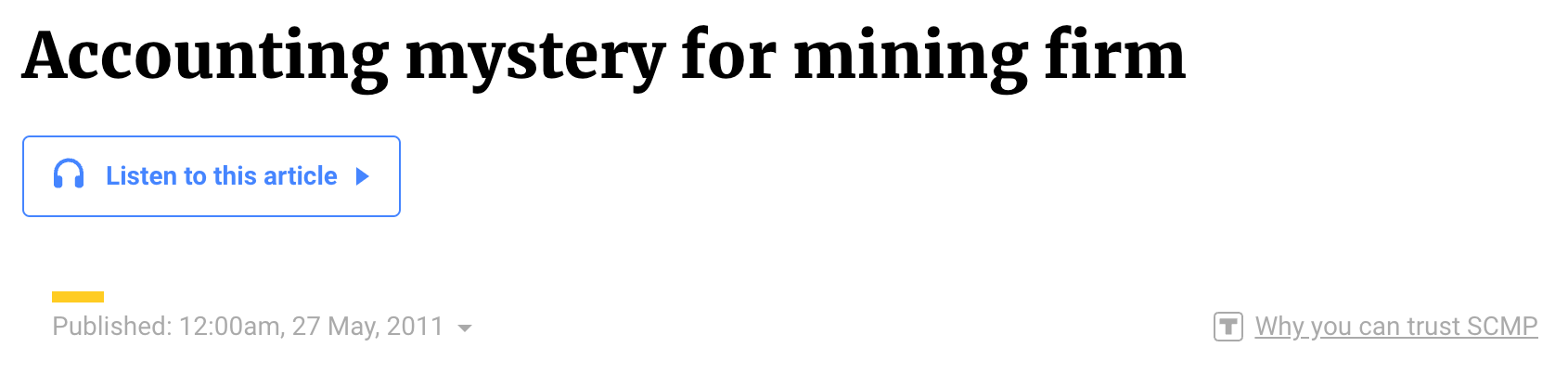 A 2011 article in the South China Morning Post pointed out that the company’s 2009 accounts did not match those of its SAIC filings. Soon thereafter, the shares were suspended. It turned out that approximately HK$1.5 billion of company funds had been funneled to majority shareholder Wu Ruilin on top of personal loans to him. The ListCo had also acquired two phosphorus mines from him personally for HK$520 million. Trading in the stock was halted in 2011.