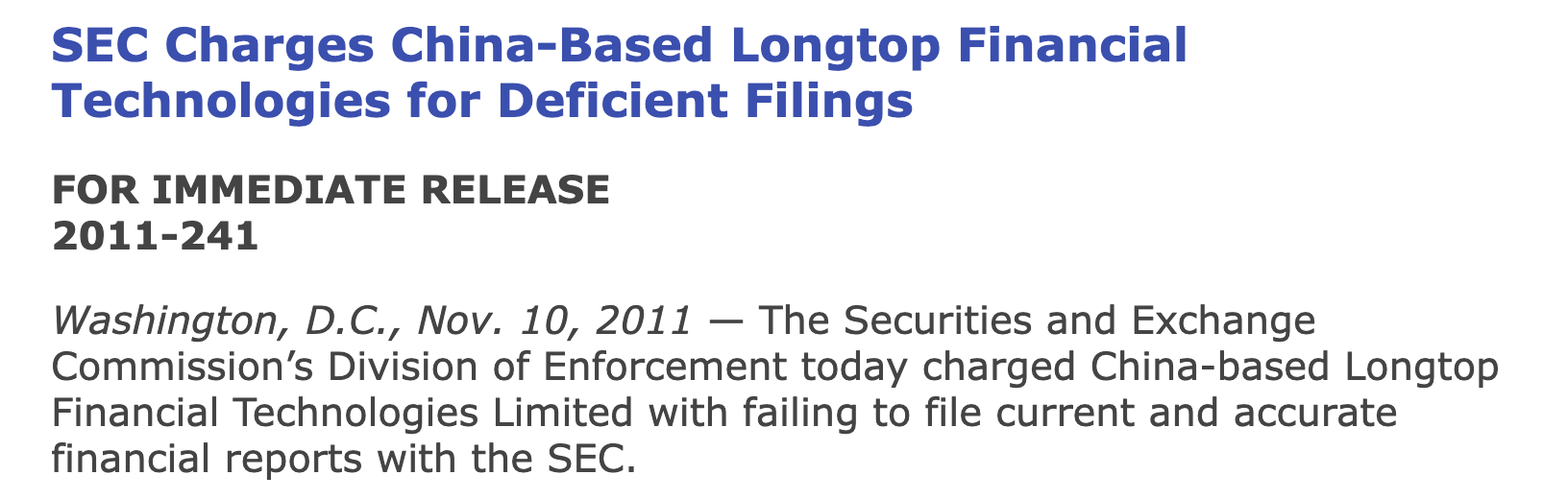 However, Citron pointed out a few issues with the company. It had set up a new business called Xiamen Longtop Human Resources that employed the majority of staff at Longtop Financial. But its accounts weren’t consolidated into the ListCo. This sister business was fully disclosed in its SEC filings.