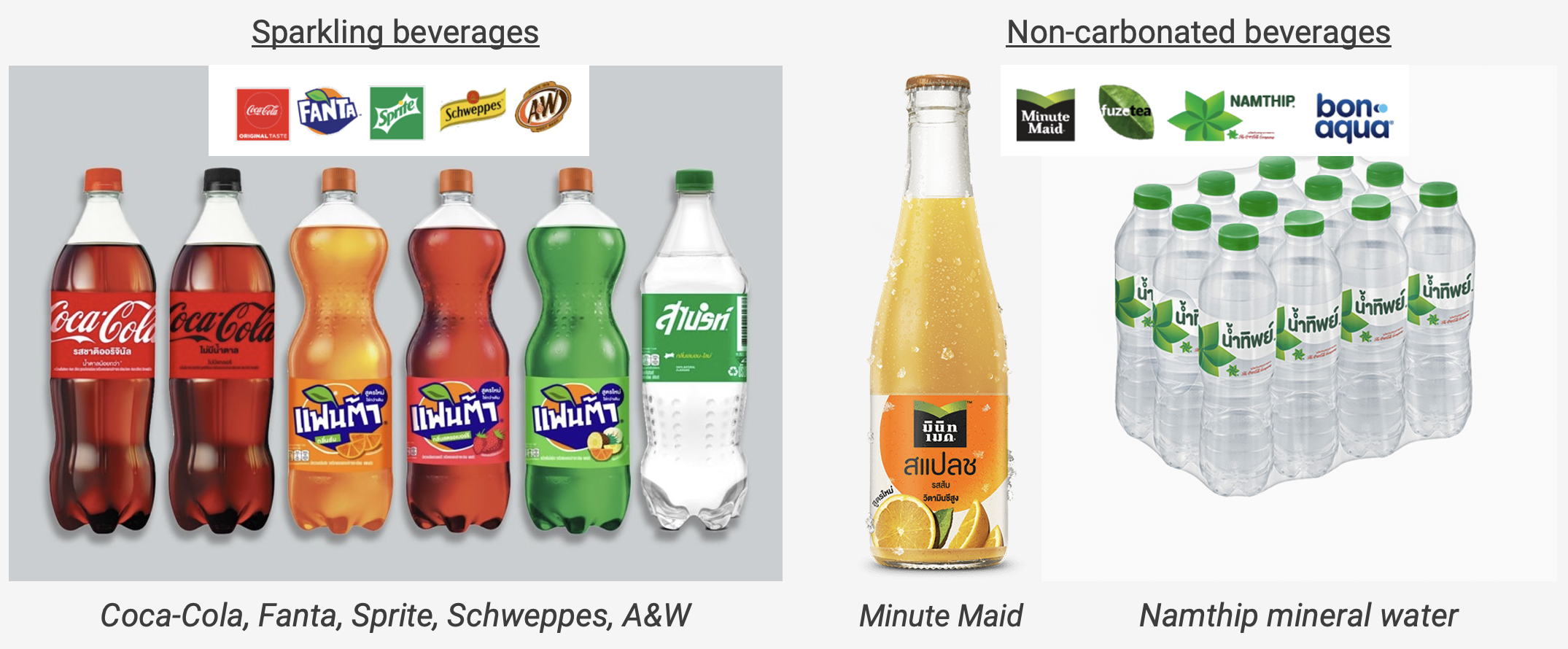 In Thailand, Coca-Cola is an incredibly strong brand name. The company has an 84% market share in carbonated beverages. It’s the gold standard — Pepsi or Est Cola don’t even come close.