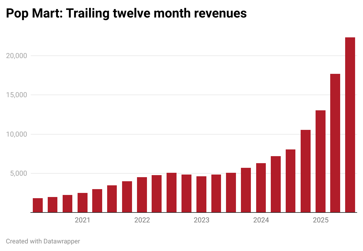 This paparazzi photo ignited a frenzy for Labubu toys across Southeast Asia, and later, the rest of the world. In the following year, Pop Mart's revenues almost quadrupled: