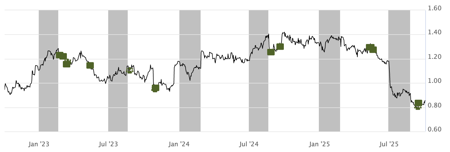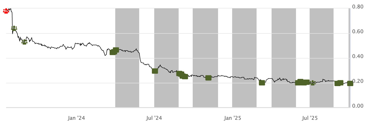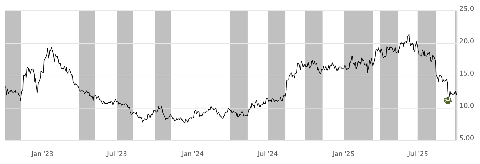 However, the stock price has dropped significantly since the summer of 2025. Converge cut its FY2025 revenue guidance from 14-16% to 10-12% due to manpower constraints. It hasn't been able to find enough new employees to install and repair household connections.