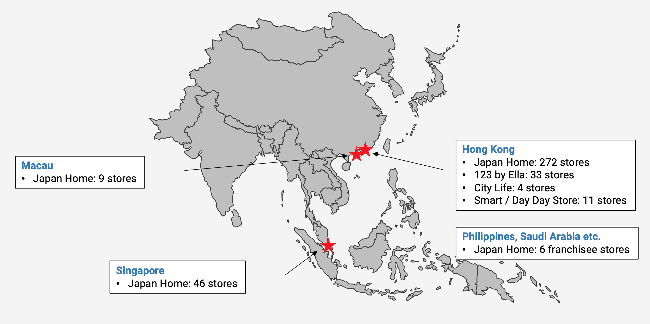 International Housewares Retail is a Hong Kong-based discount retailer of houseware goods with 380 stores across Hong Kong, Macau, Singapore and several other countries. Hong Kong represents roughly 90% of revenues, and the rest comes from Macau and Singapore.