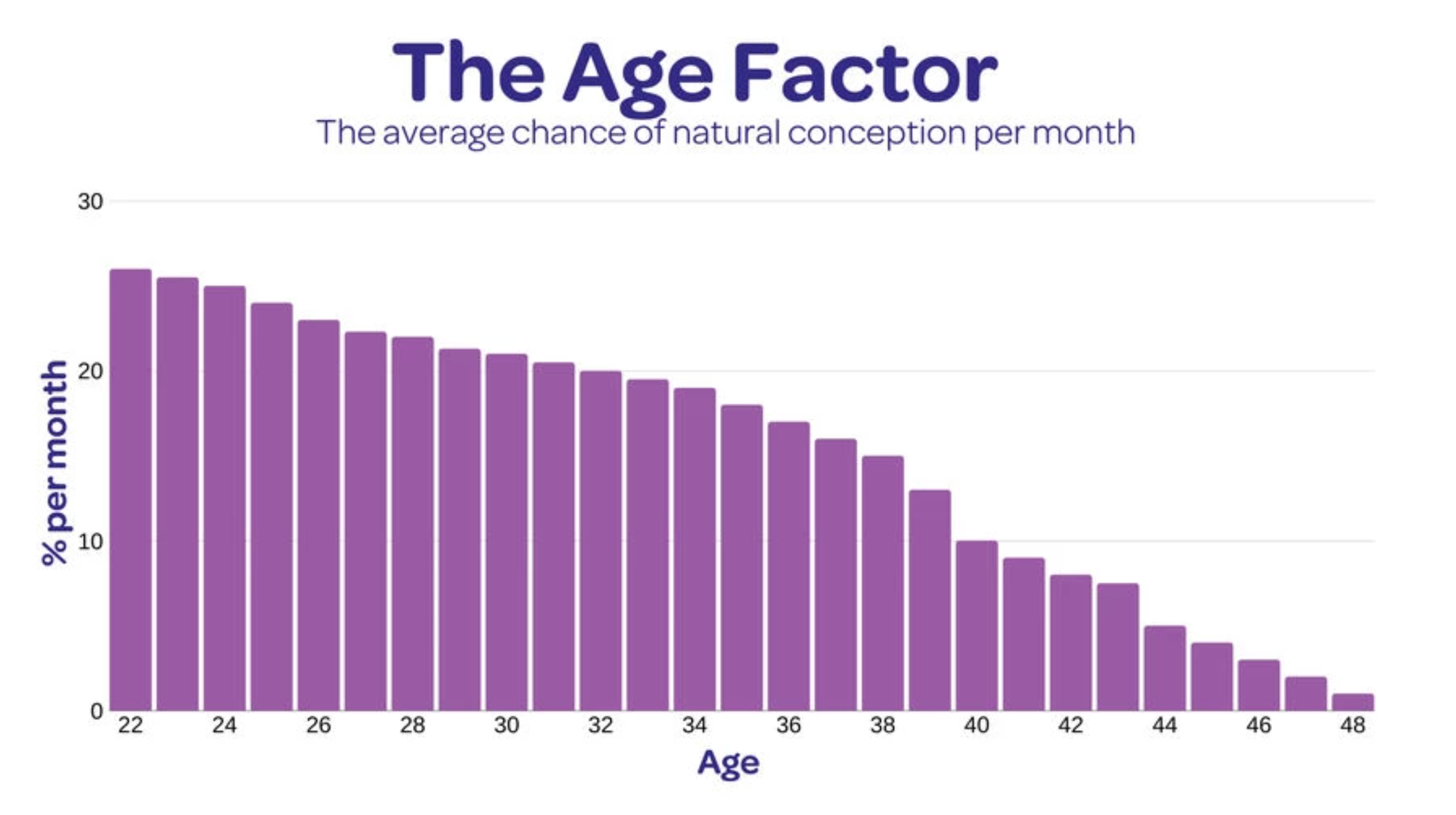 Part of the problem is that couples are choosing to have babies later in life. The likelihood of a natural conception each month goes from around 20% at age 30 to around 10% by age 40. The longer we wait, the more difficult it gets.