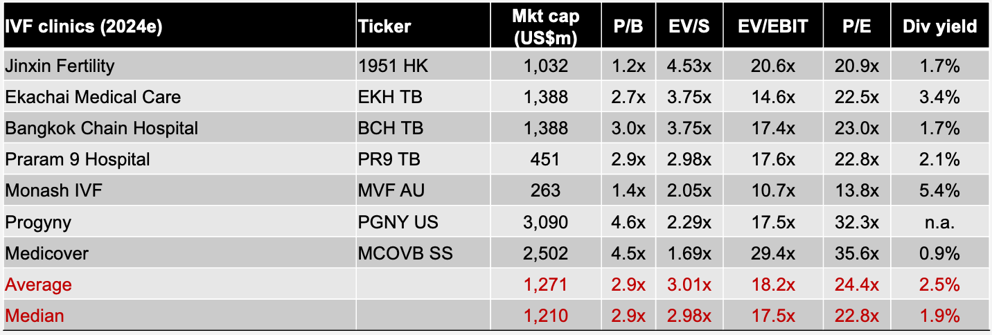Within China, the only pure-play IVF clinic out there is Jinxin Fertility (1951 HK). It’s a Shenzhen-based IVF clinic operator with over 50 clinics across the Sichuan and Guangdong provinces. Jinxin Fertility’s services offered include genetic testing, artificial insemination and IVF.