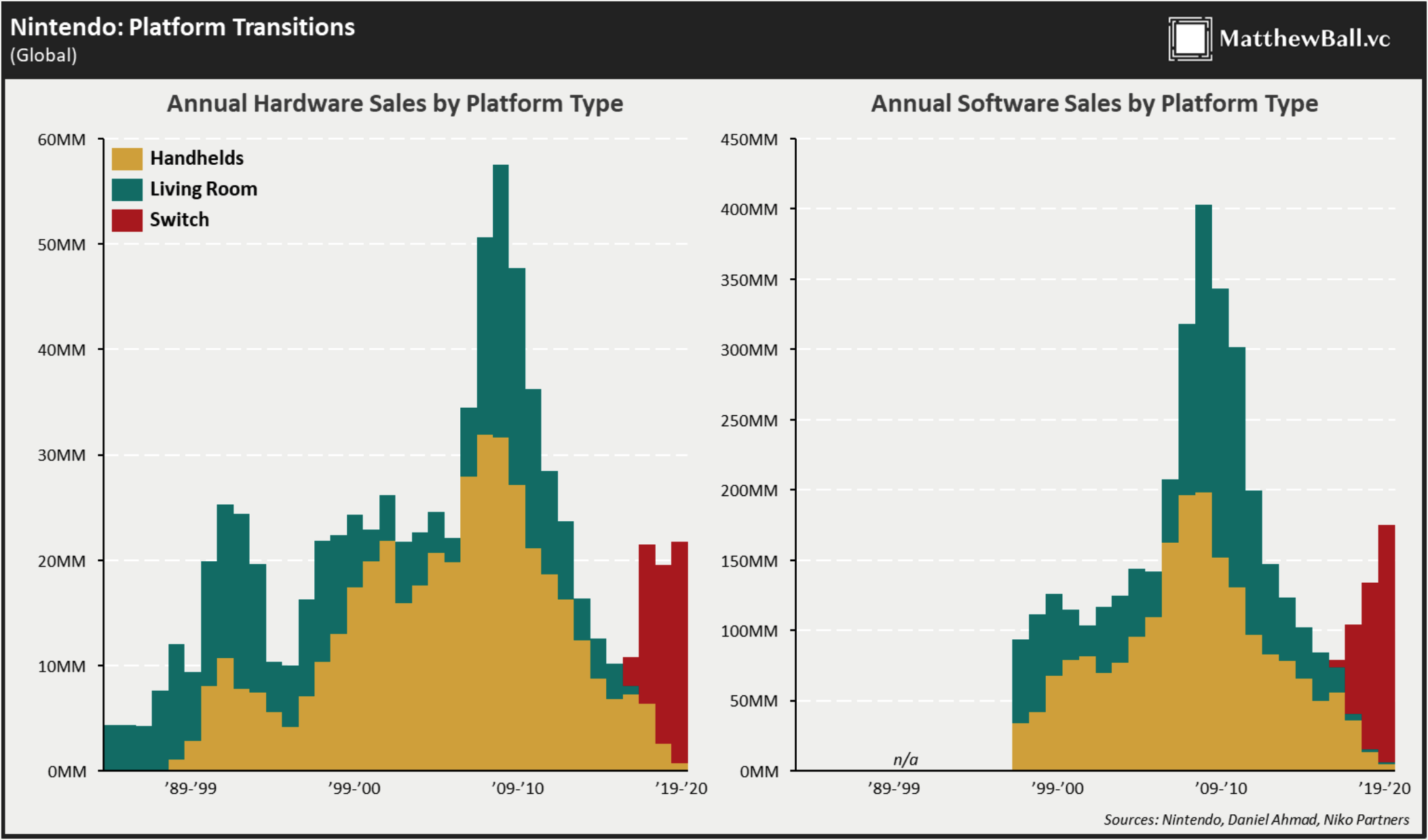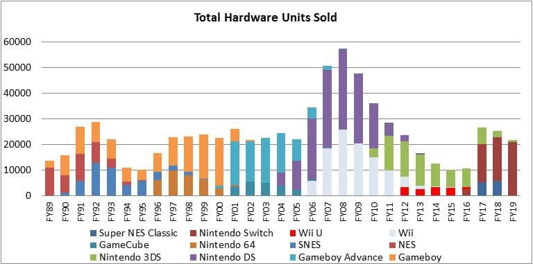 The 2019 release of Nintendo Switch Lite made the console even easier to carry. It has thus replaced the need for a separate handheld console of the Nintendo DS / 3DS kind. That makes overall Switch sales numbers look better. At the same time, Switch is cannibalising Nintendo’s handheld console sales (Gameboy / Nintendo DS).