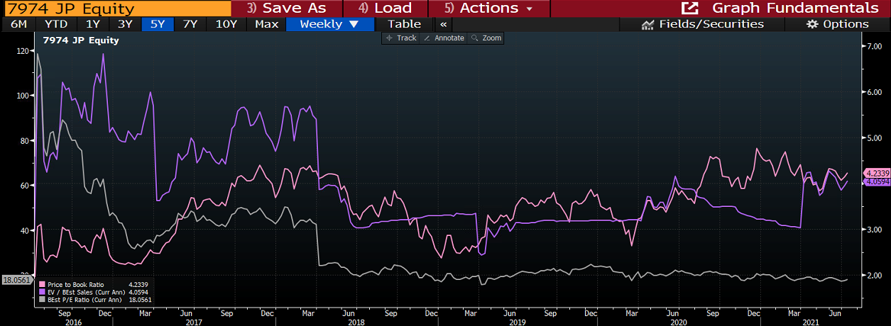 Nintendo’s peer group trades at multiples of 20-30x P/E. From that perspective, Nintendo’s near-term multiple looks inexpensive.