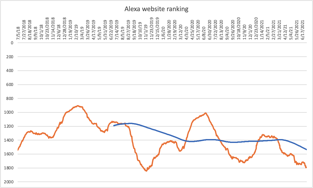 The 12-month average Alexa website ranking for Nintendo.com had also weakened since March 2021, which is incidentally when US restaurant traffic started to improve. I suspect that Americans - and maybe Europeans - are now starting to spend less time at home.