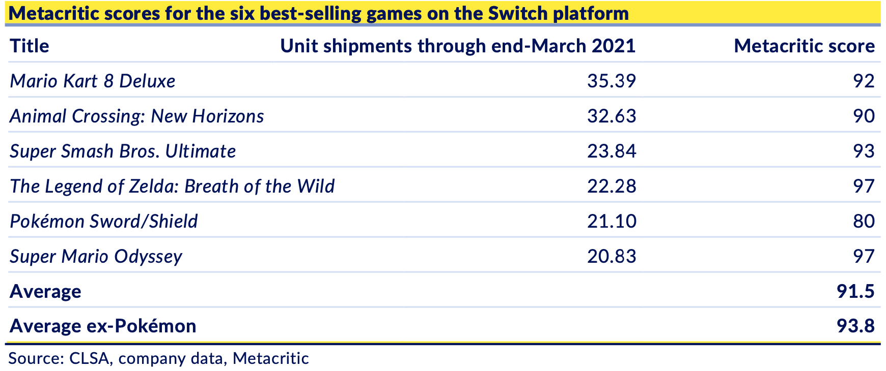 Given that the majority of Nintendo’s games are produced in-house, an important factor to assess will be Nintendo’s ability to create hit content.