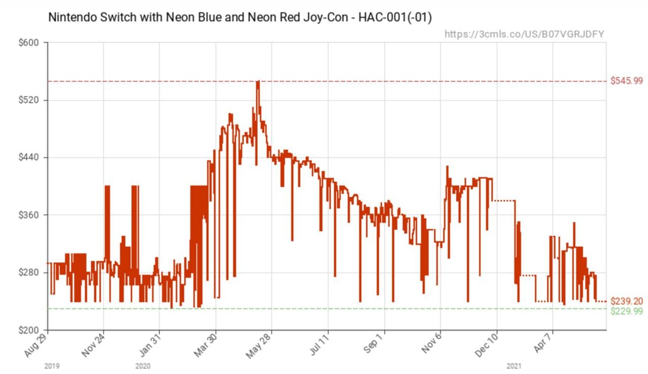 We can also observe that second-hand prices for Nintendo Switch consoles have dropped back to pre-pandemic levels.