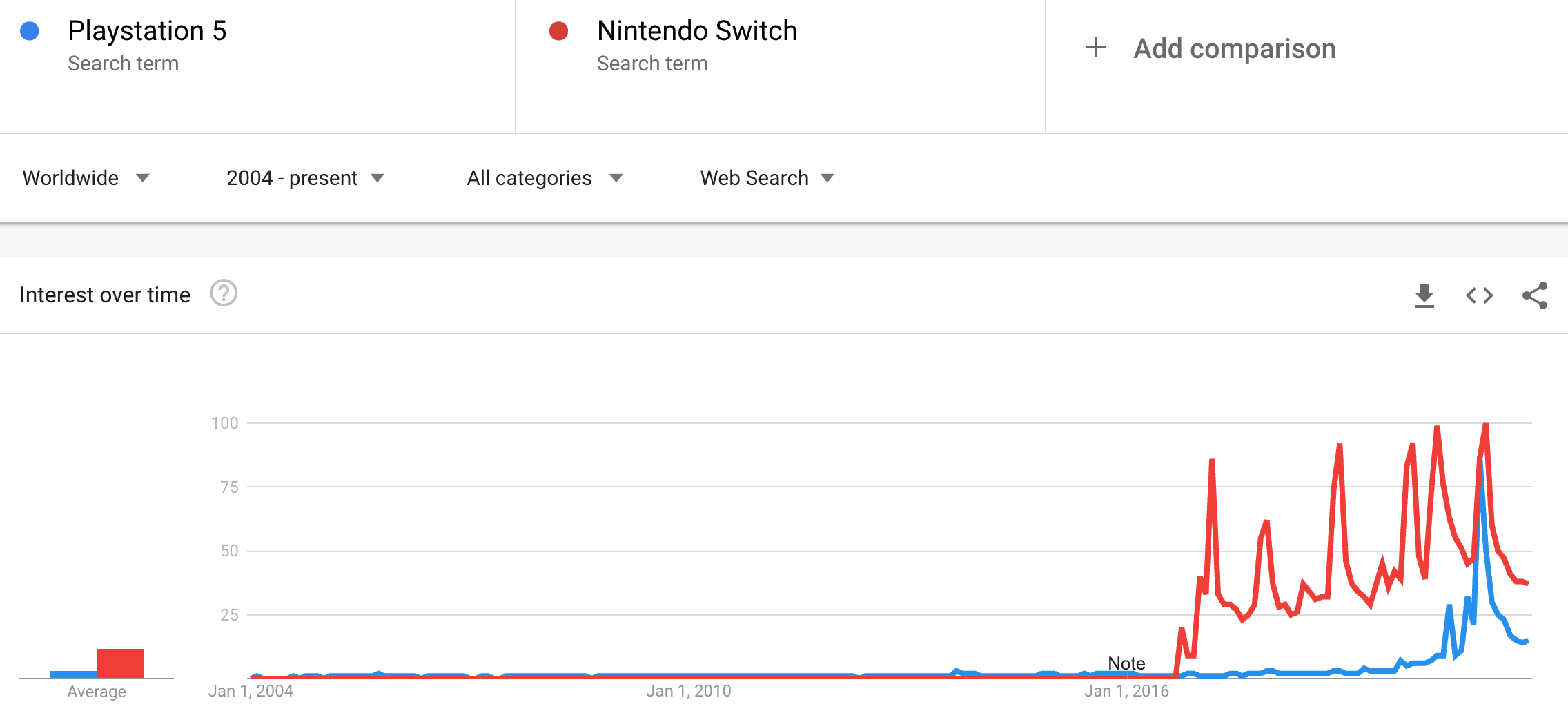 Search queries for Nintendo Switch are still higher than for Playstation 5