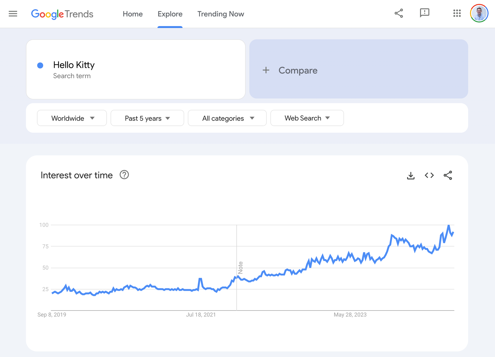 Finally, you can use Google Trends to understand consumers better. For example, look at the Hello Kitty page and scroll down. You’ll see that users are also searching for Kuromi — a tomboy character from the My Melody universe that’s become popular recently. If you compare the two search query charts, you’ll get a sense of how important Kuromi is compared to the main Hello Kitty brand. By scrolling down the main Hello Kitty page, you’ll also get a sense of the countries in which Hello Kitty has become popular.