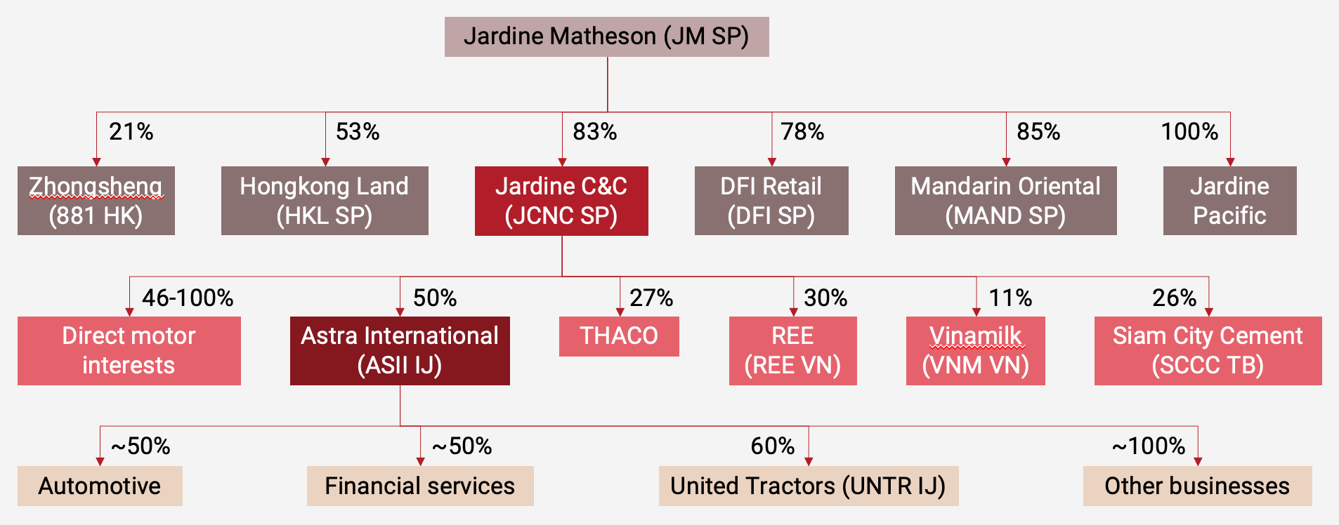 - Jardine C&C’s most important asset is a 50% stake in Indonesia’s largest automaker, Astra International. Other parts of Jardine C&C included an 11% stake in Vinamilk, a small stake in engineering firm Refrigeration Electrical Engineering, shares in Siam City Cement, and Vietnamese automaker THACO. However, Astra represented 73% of NAV and was, hence, the main focus of my presentation.