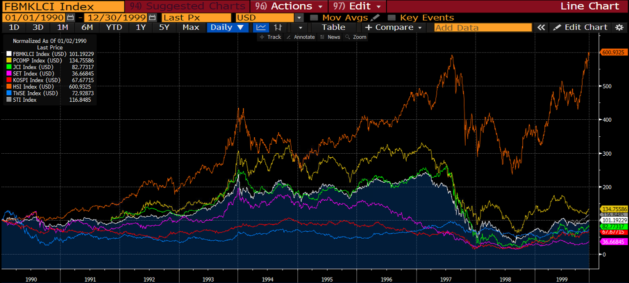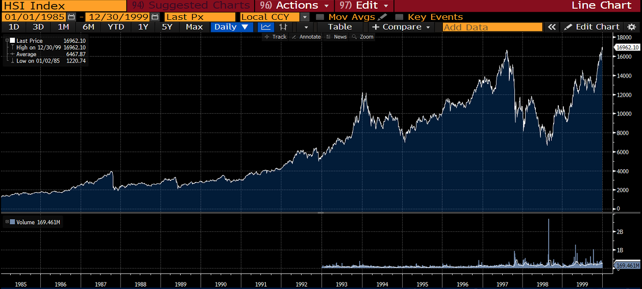 From the vantage point of 1994, many investors felt that it was now Southeast Asia’s turn to outperform. Malaysia and Singapore had had a massive rally in 1993. Hong Kong’s stock market, on the other hand, was climbing a wall of worry, especially as the handover to the People’s Republic of China was getting closer.