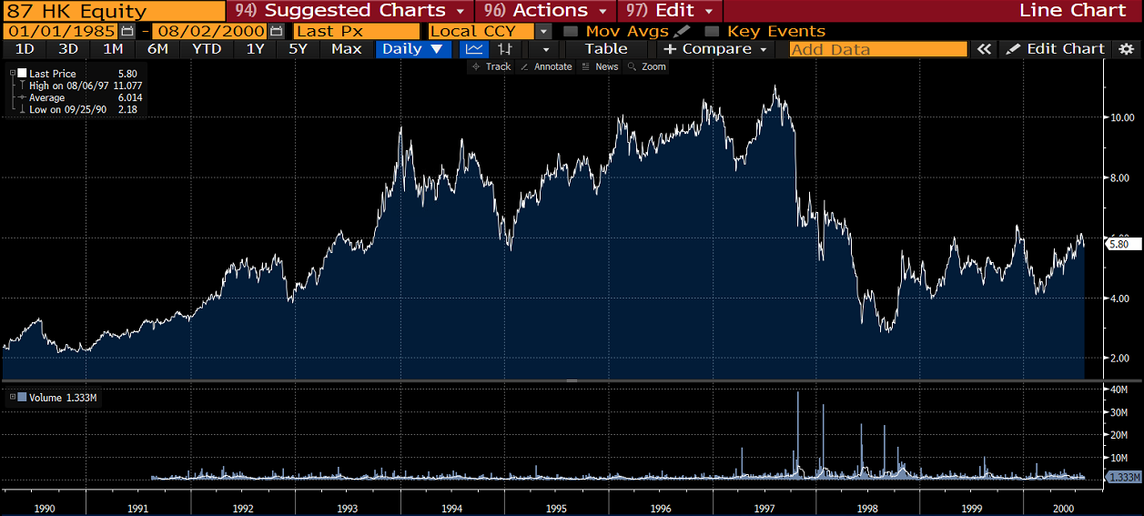 Thanks to his team’s investigative research, Kong was one of the few fund managers in Hong Kong that managed to avoid the bankruptcy of Carrian (the “Enron of 1980s Hong Kong”). It was a difficult time for him personally. He faced considerable pressure at Schroders to participate in the stock’s rise but luckily he managed to withstand those pressures and stay away from the stock.