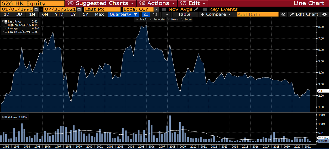 One of Cheah’s favourite stocks was taxi financing company Winton Holdings. Why? Because as a specialist lender he thought they would be able to appraise the creditworthiness of borrowers better than others. They borrowed at 1-2% over HIBOR and lent at a floating rate around 22-23%. The default rate had historically been just around 0.5%. The market seems to have considered Winton’s margins to be unsustainable but Cheah felt he had done his research and that the business would continue to compound capital at a rapid rate.