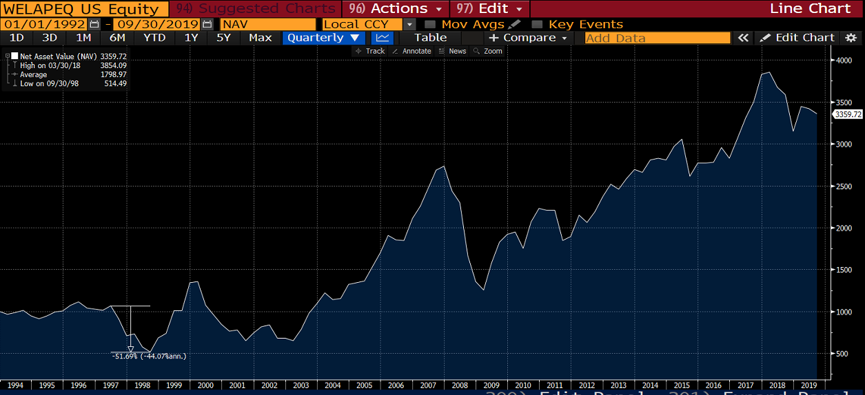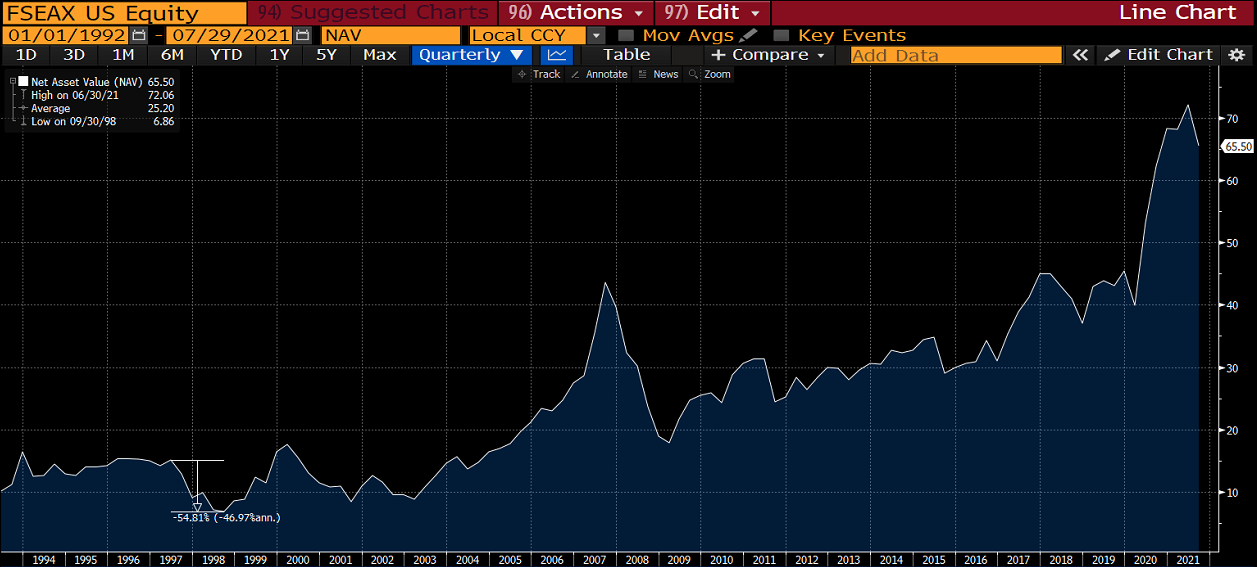 Anthony Cragg (16) at Strong/Corneliuson stayed with Strong Capital Management until it was acquired by Wells Capital Management. Since 2018, Cragg is listed as a “former adviser”, suggesting that he may have started to retire. The Asia Pacific Fund had a drawdown of around 50% through the Asian Financial Crisis but remained small, despite spectacular performance in the subsequent decades.