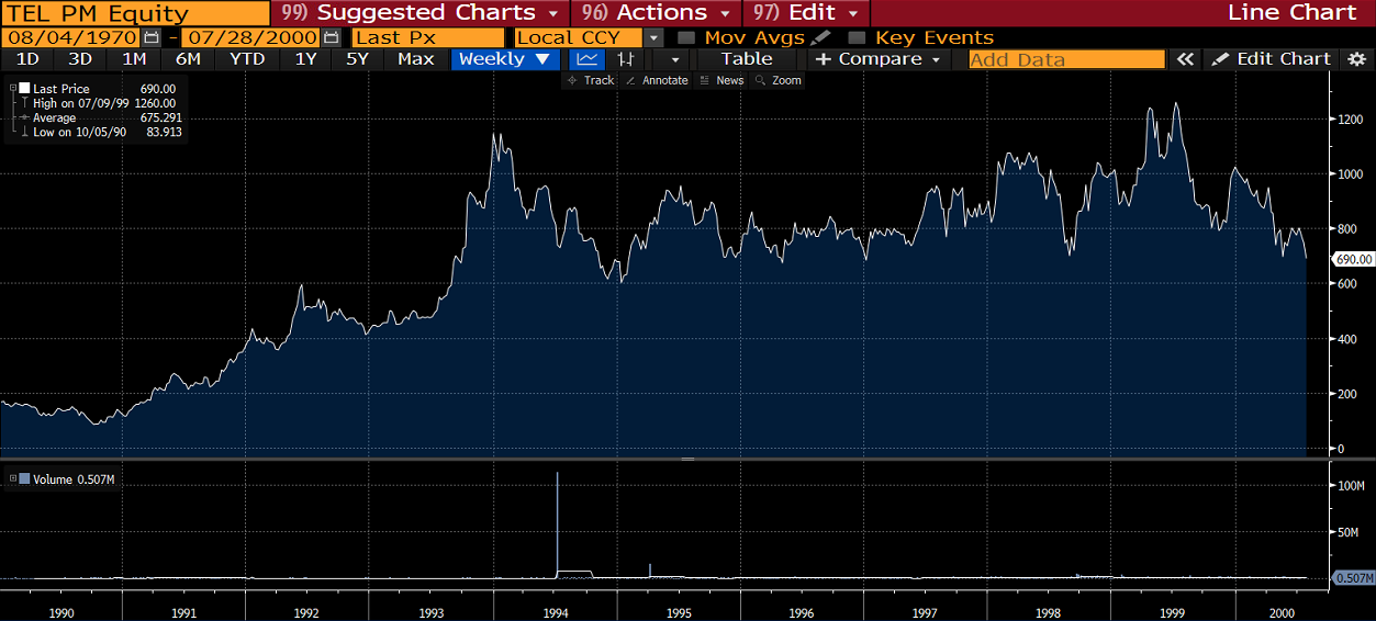 Fowler’s track record was enviable. He bought Philippine stocks in 1986 in the last days of the Marcos regime. Had he been really brave, he would have bought prior to the election. But he moved after they had shot up 50% and still made a killing on his investments. For example, he started buying Philippine Long Distance Telephone at PHP 1.5/share. By the mid-1990s, the stock had reached PHP 70.