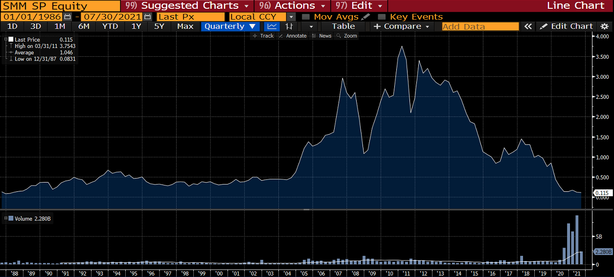 Roughly 2 years after the book was written, Southeast Asian stock markets began to wobble. It quickly turned into a carnage - especially among small-caps and the more illiquid markets such as Indonesia and the Philippines. While the stocks in some of these markets were cheap on their own, emerging market currencies went into a free-fall after developed market liquidity tightened while carry trade flows reversed.
