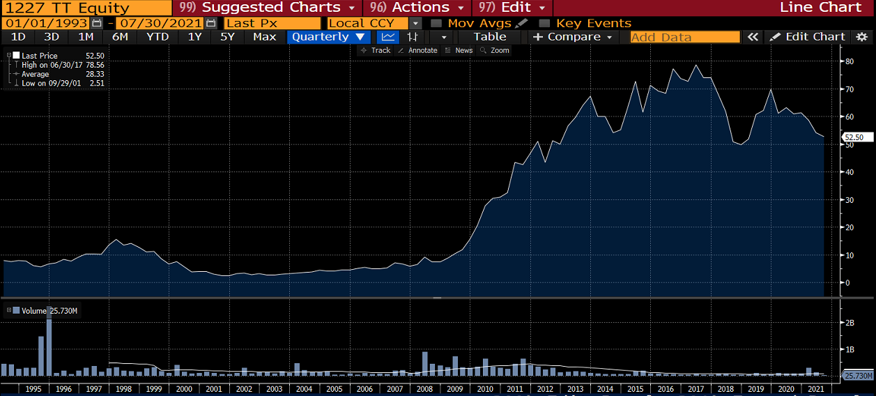 In the early 1990s, Phillip’s favourite market by far was Taiwan. After the big crash in the early 1990s, prices had come down to more reasonable levels. He described it as the largest emerging market in Asia: big, illiquid and poorly researched. He also thought that many Taiwanese companies would benefit from the opening up of China. Compared to companies in Hong Kong, Taiwanese companies were operations-focused, less status-conscious and often run by engineers or other people with strong technical qualifications.