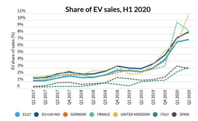 European EV sales boomed in 2020 due to new CO2 emission limits and penalty charges for OEMs who didn’t meet the required targets.