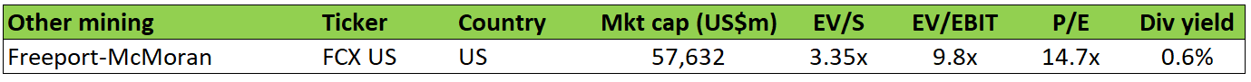 Miner Freeport-McMoran does not have major EV exposure. The stock is also trading at a cyclical high point after its recent rally.