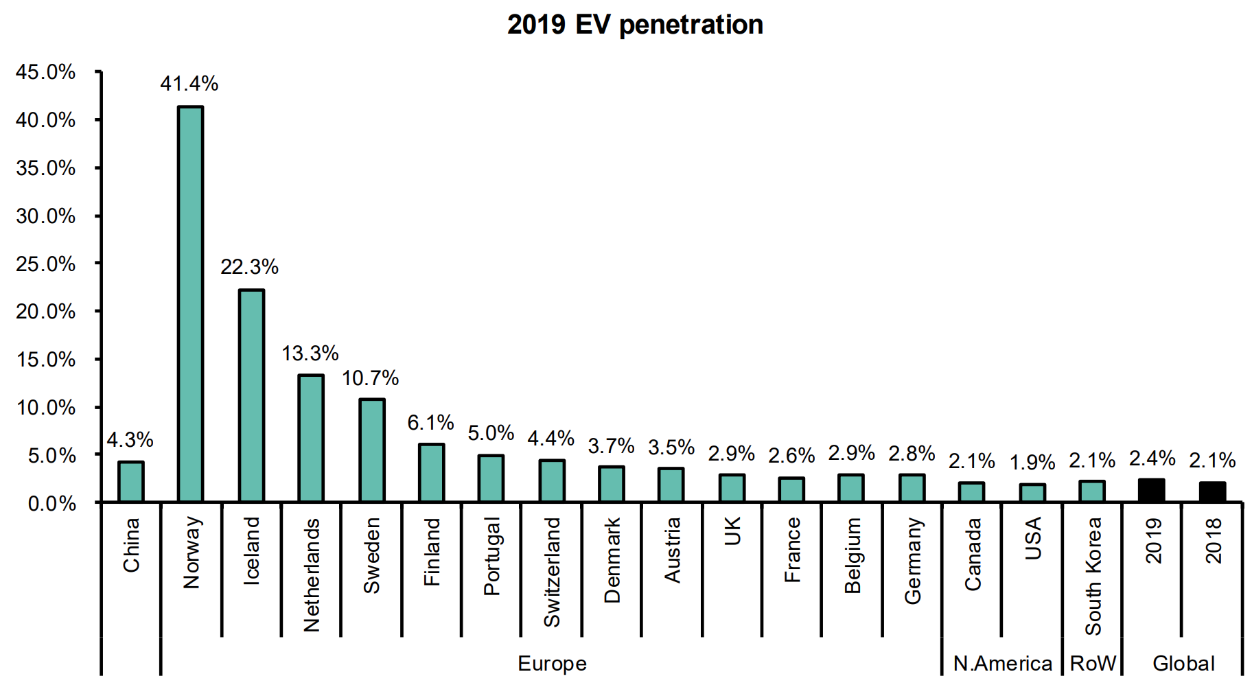 Absent any subsidies and government policies, I, therefore, find it difficult to see EVs making up the majority of new car sales before 2040. Significant subsidies will be needed for the shift to occur at the speed that many investment banks are forecasting. Today, the EV penetration rate is heavily skewed towards countries who are either rich (less price-sensitive) and/or offer generous subsidies, with Norway being the prime example: