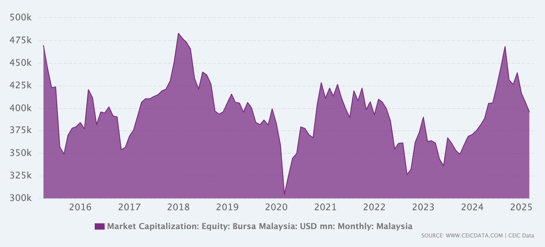 When it comes to the stock market, the Malaysian and Singapore stock exchanges used to be run as a single entity before being split off in 1973. The aggregate market cap for Bursa Malaysia is about US$400 billion, close to that of Singapore: