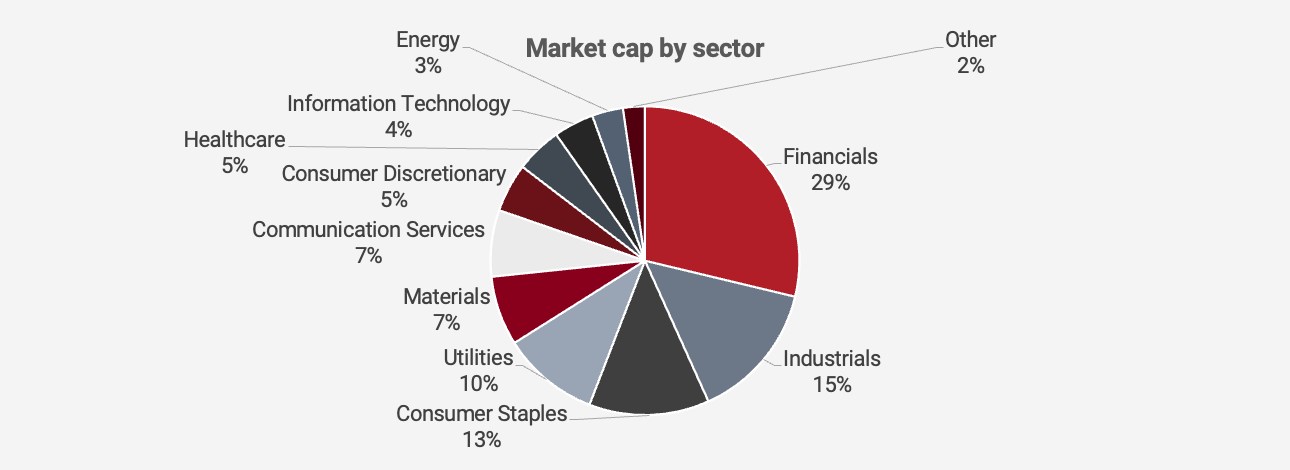 In terms of the sector split, it’s more diversified than many other emerging markets, with plenty of industrials, consumer stocks and even tech companies.