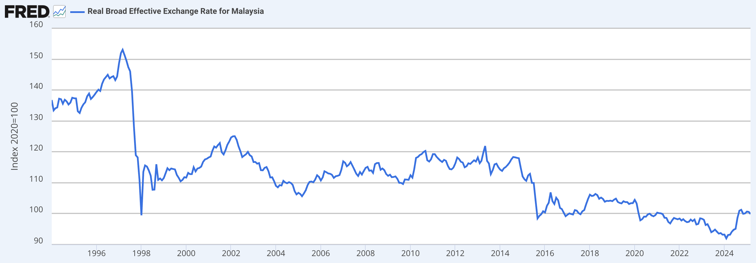 As I’ve argued in the past, the currency has been incredibly weak, with the Malaysian Ringgit trading at right about its post-Asian Financial Crisis lows in terms of the real effective exchange rate.