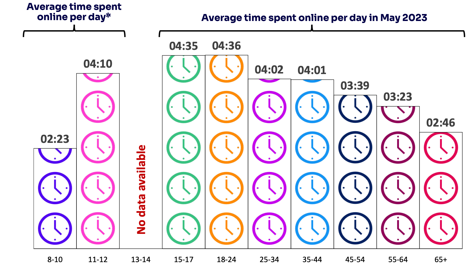 So, if they’re not hanging out with friends, what are they doing instead? Spending time on their phones. A study from the UK government agency Ofcom suggests that Zoomers spend over 4 hours per day online, compared to just 3 hours for the population as a whole: